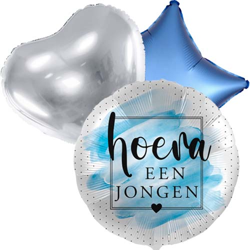 Balloon bouquet hooray a boy. Three fun birth balloons for the price of two! A balloon from a box, always a fun floating surprise!