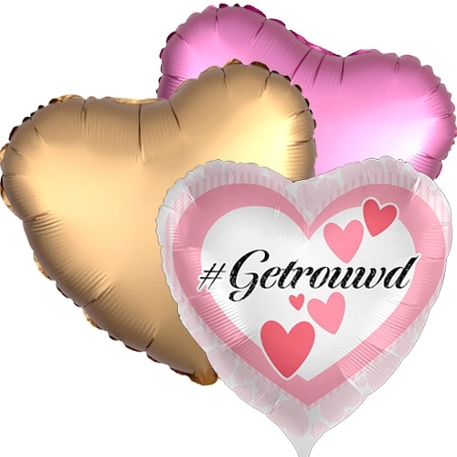 Balloonbouquet #Married. Three fun wedding balloons for the price of two! A balloon from a box, always a nice floating surprise!
