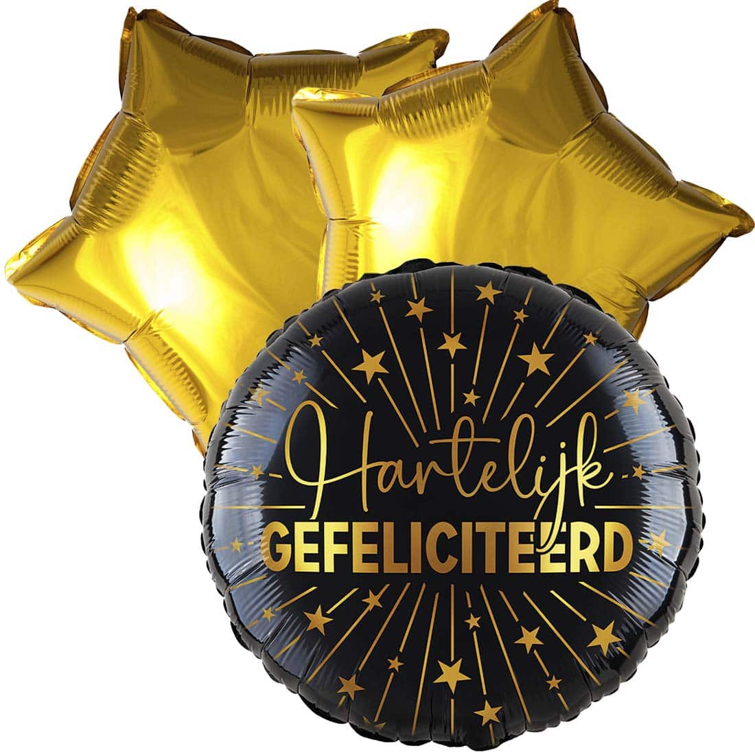 Balloon bouquet congratulations black gold. Three fun birthday balloons for the price of two! A balloon from a box, always a nice floating surprise!