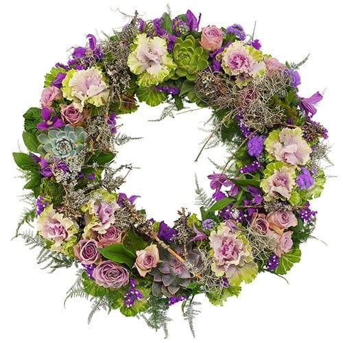 Funeral wreath Ajour lilac-purple, with beautiful lilac and purple flowers, wreath of about 50 cm. HRemember the deceased with this beautiful funeral wreath.