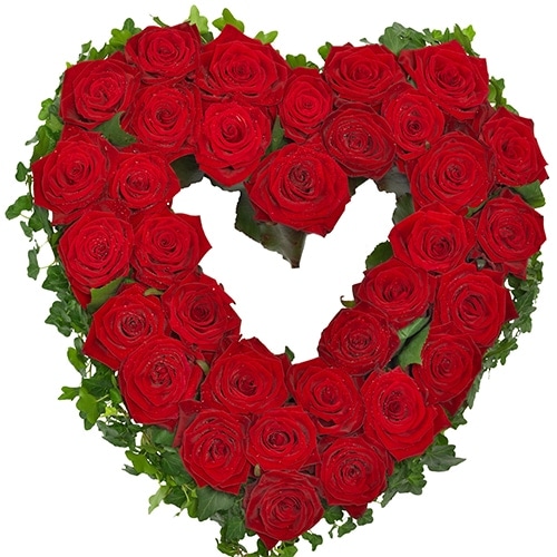 Open mourning heart of red roses with only red roses, approx. 50 cm. Red roses symbolize love and beautiful memories.