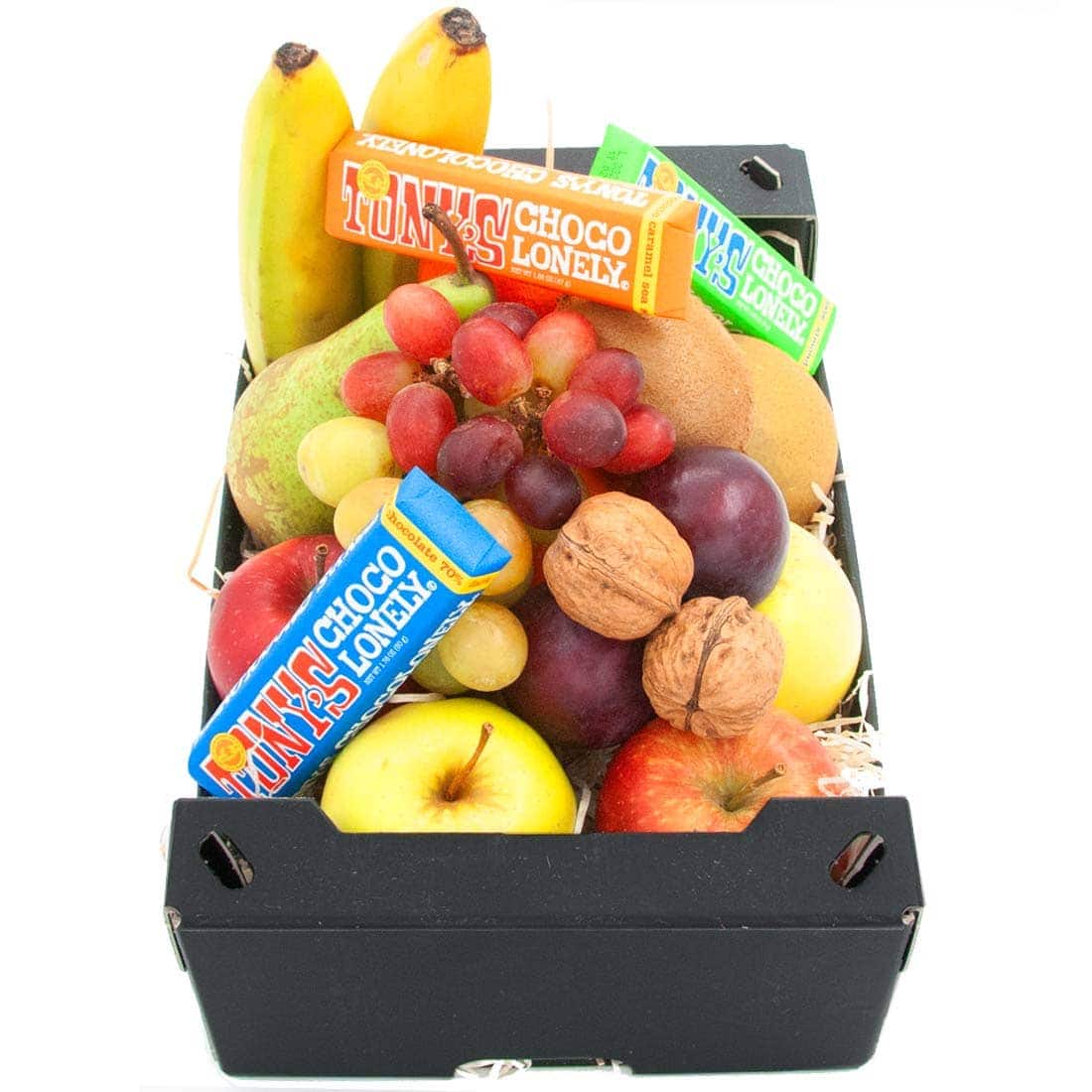Fruit box with Tony Chocolonely, our fruit baskets are put together by our fruit specialist just before we send them to the recipient.