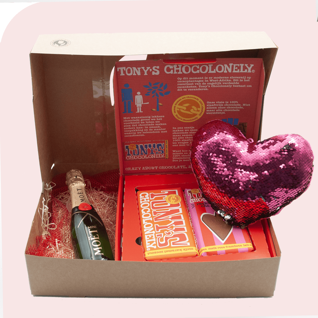 Gift box full of love. Looking for the perfect gift to surprise someone, thank them, or declare your love? You can’t go wrong with the Gift box full of love! This festive and heartwarming gift box contains everything to make someone’s day extra special.