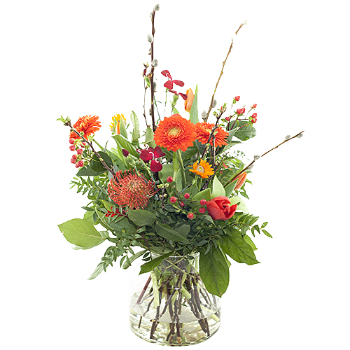Spring bouquet orange, this bouquet contains a mix of orange flowers.