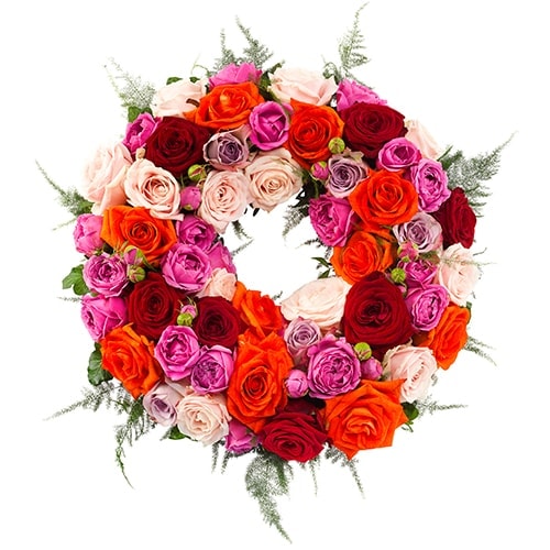 Funeral wreath ajour mixed roses, our funeral arrangements are made with the utmost care by a local professional florist.
