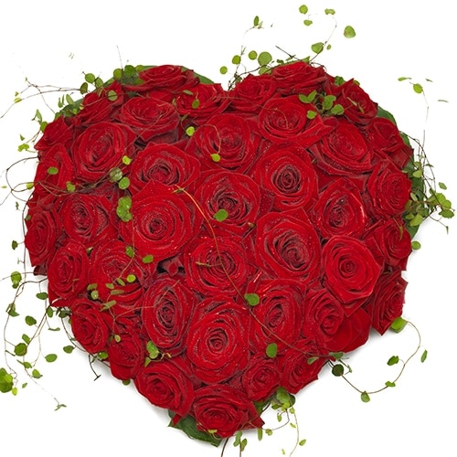 Heart shape with red roses, of approximately 50 cm. Red roses symbolize love and beautiful memories.