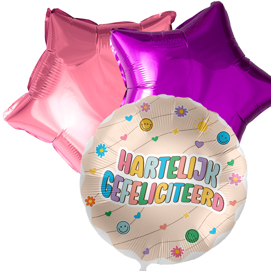Balloon bouquet congratulations smiley. Three fun birthday balloons for the price of two! A balloon from a box, always a nice floating surprise!