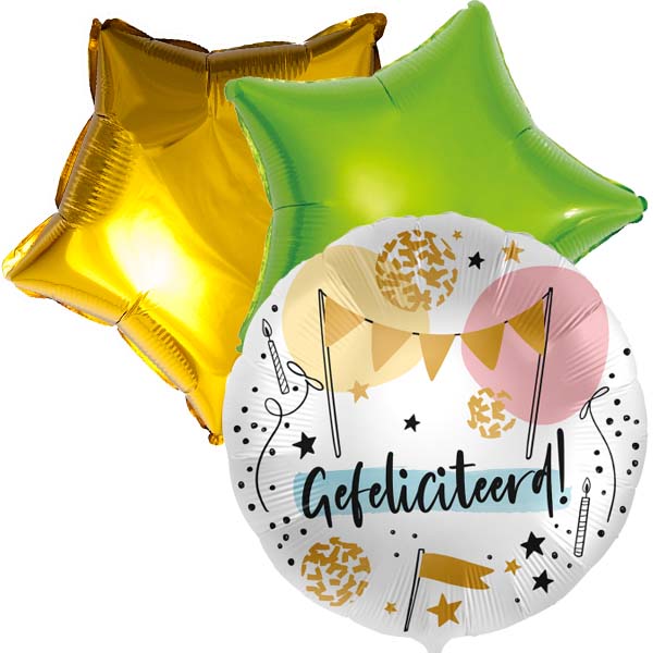 Balloon bouquet Congratulations party. Three fun birthday balloons for the price of two! A balloon from a box, always a nice floating surprise!