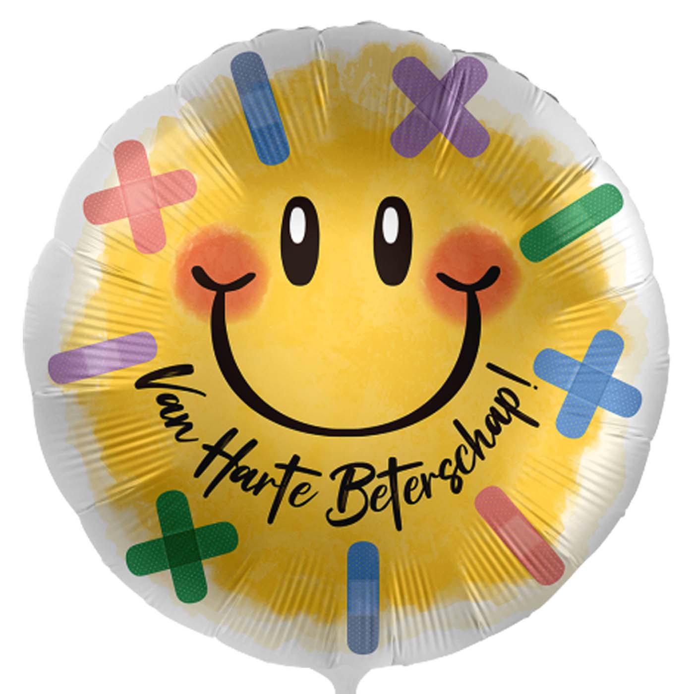 Get well soon Smiley with Bandages helium balloon of approximately 45cm. A balloon from a box, always a nice floating surprise!