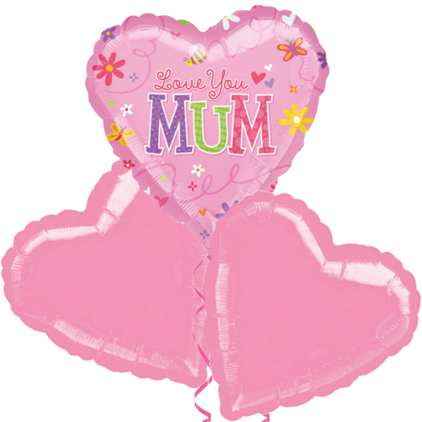 Balloon bouquet love you Mum, these nice balloons are delivered inflated in a box with a ribbon and a weight attached.