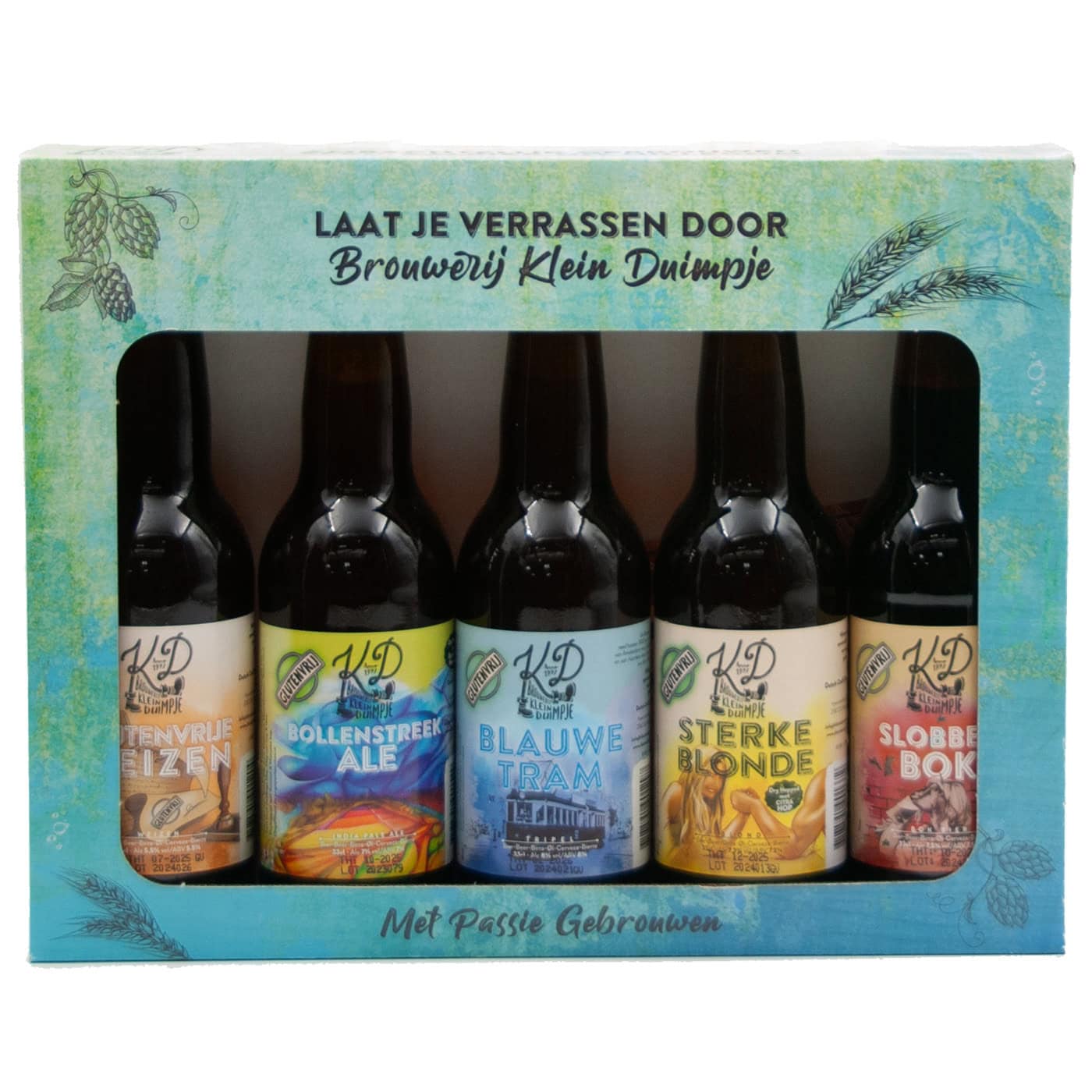 Tom Thumb Gift Box Gluten Free. 5 bottles of special beer from our neighbors. Brewed by in the craft brewery located in the Bollenstreek