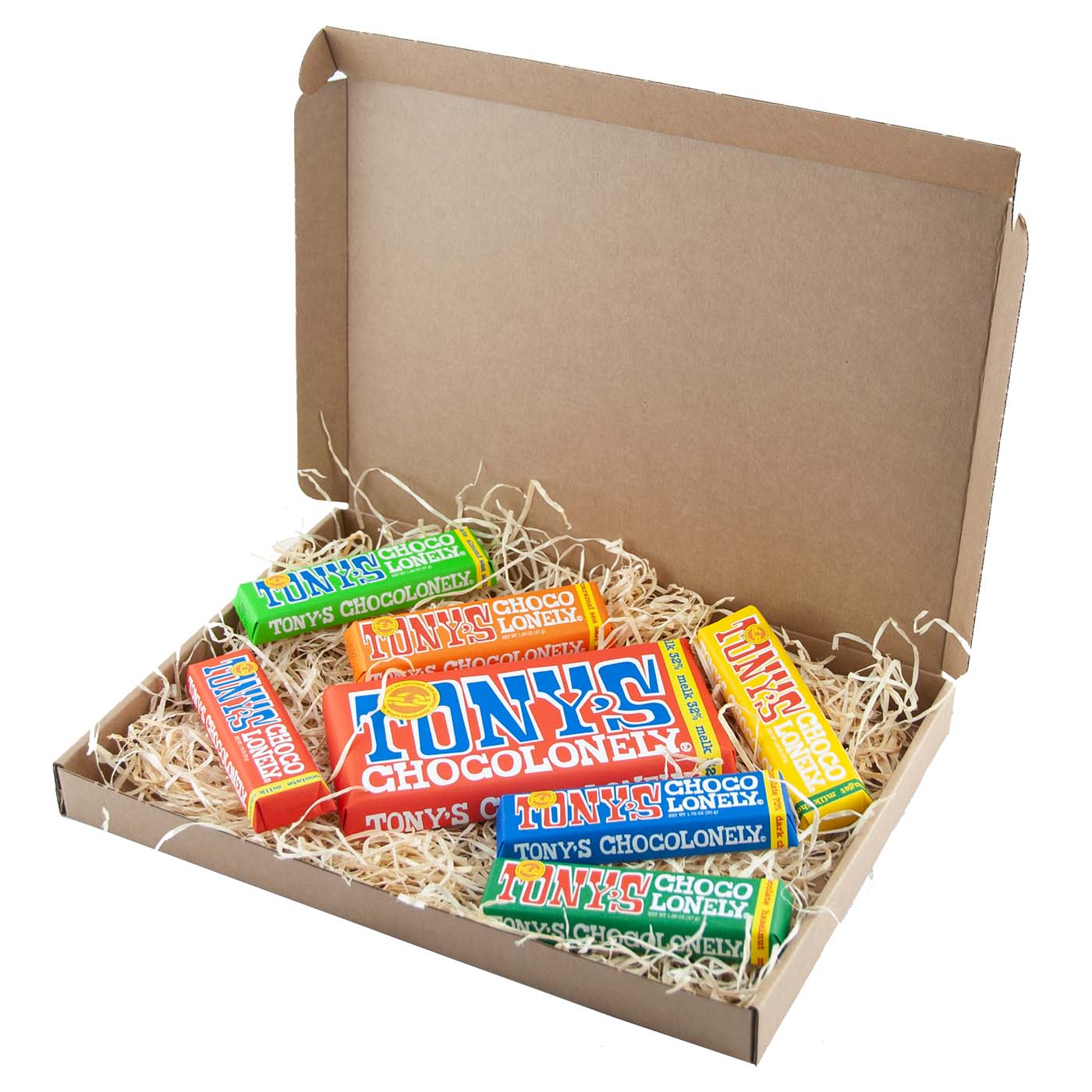 Tony’s Chocolonely family pack 6 bars of 47/50gr and 1 large bar of 180 gram. Tasty and for every occasion. Always a nice gift!