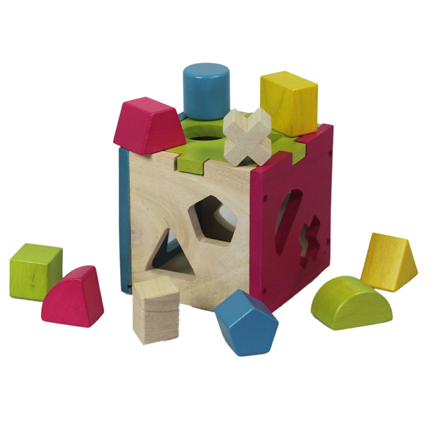 Wooden toy puzzle cube, this shape puzzle is specially designed to stimulate the educational development of your child. It helps to recognize shapes and colors and at the same time promotes fine motor skills. The blocks are designed with a child-friendly size, so that they are easy to grasp.