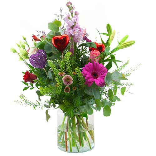 Mother’s Day bouquet pink lilac red is hand tied by a local professional florist.
