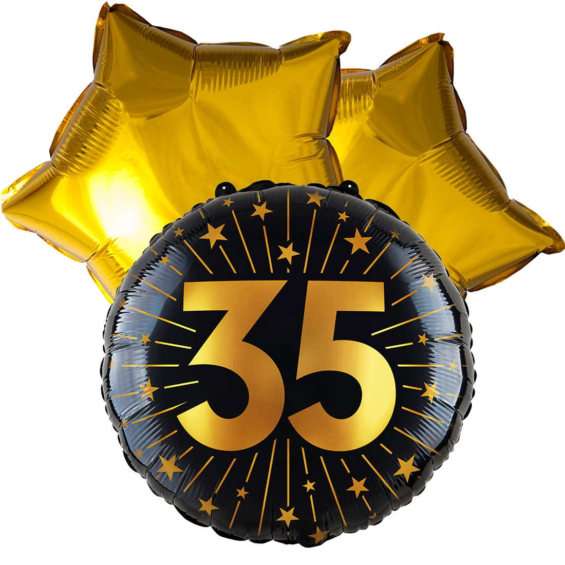 Balloonbouqet 35th birthday. Size approx 18 inch. Three fun birthday balloons for the price of two! A balloon from a box, always a nice floating surprise!