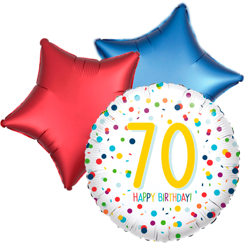Balloon bouquet 70th birthday confetti. Three fun birthday balloons for the price of two! A balloon from a box, always a nice floating surprise!