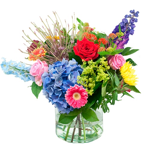 Colorful summer bouquet, bouquet with real seasonal flowers, hand-tied by a local professional florist.