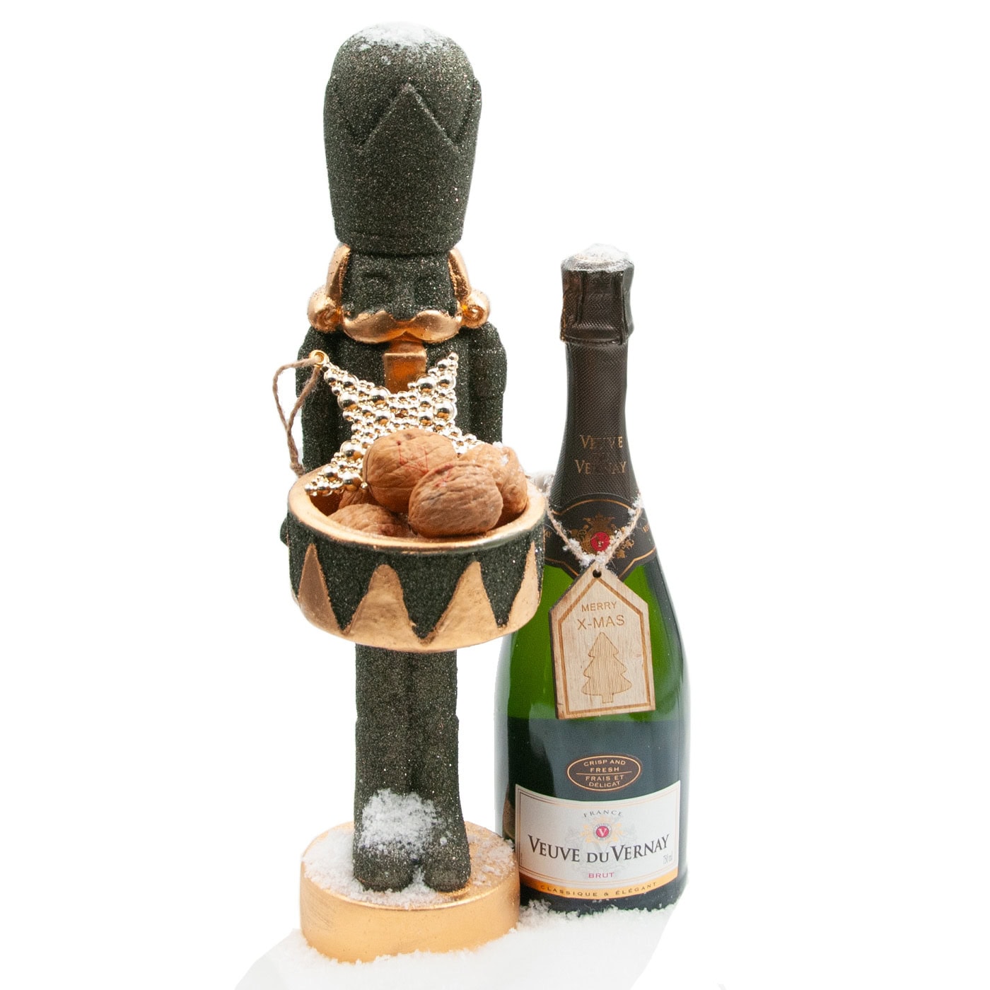 Nutcracker with Veuve, nutcracker 41cm in green with walnuts and a delicious bottle of Veuve du Vernay brut 75cl