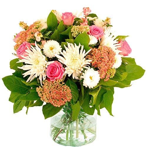 Autumn bouquet in pink and white tones, this bouquet contains a mix of autumn flowers in pink and white tones