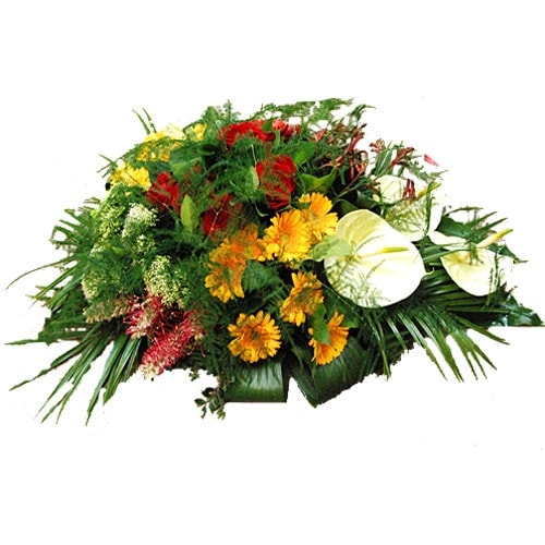 Funeral arrangement red white yellow, our funeral arrangements are made with the greatest care by a local professional florist.