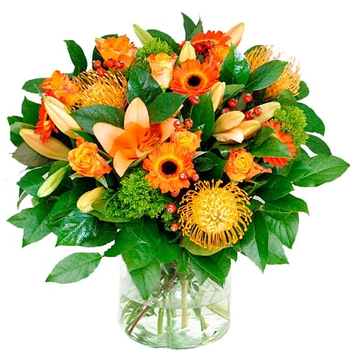 Bouquet Orange flowers including orange roses, the best choice to put a smile on the face of the recipient.