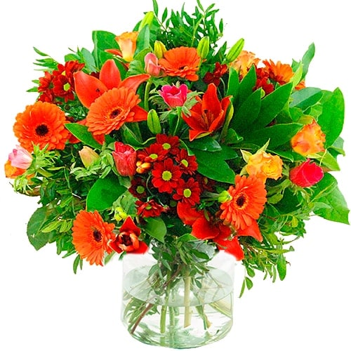 Bouquet orange red, make someone happy with this beautiful bouquet with warm colors. Guaranteed a nice gift.