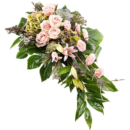 Funeral arrangement pink and green, our funeral arrangements are made with the utmost care by a local professional florist.