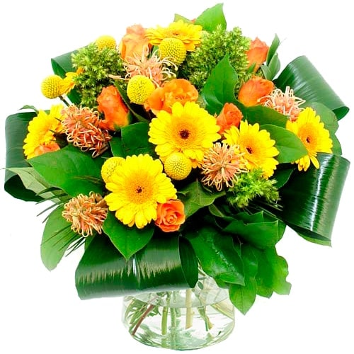 Bouquet orange yellow, cheerful bouquet of orange and yellow flowers. Suitable for every occasion, with a selection of the best seasonal flowers.